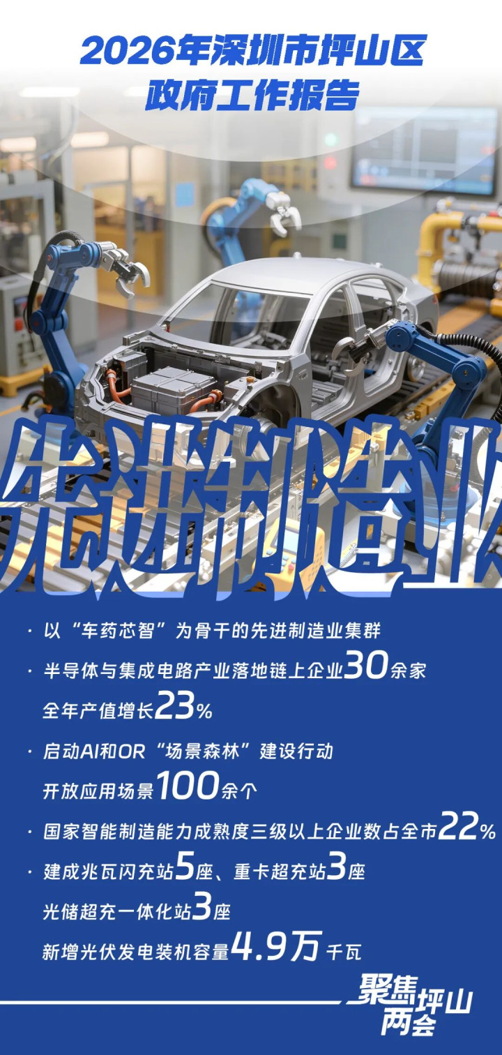 1月28日上午,深圳市坪山区第二届人民代表大会第七次会议开幕。区政府工作报告提到,2025年坪山主要经济指标实现两位数增长,谋划布局以“车药芯智”为骨干的先进制造业集群,全面推动现代服务业提速发展冠达管理,民生福祉持续增进。